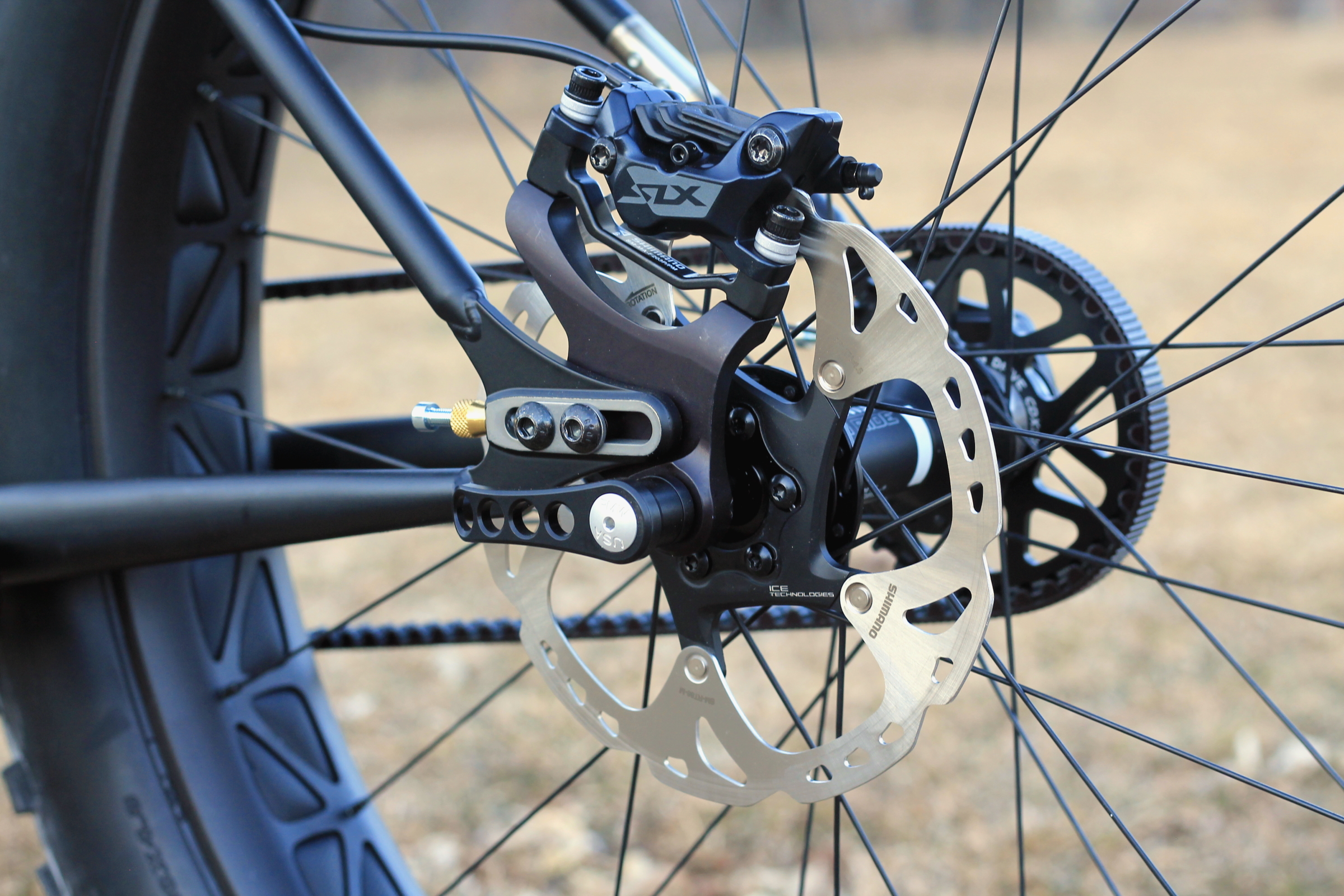 This latest build was really quite a custom bike. My client has wanted a pinion bike for a long time (hates derailleurs) and finally decided he wanted a fat bike. The two go together great, since the fat bike is such a great multi-purpose, simple machine. Going Pinion with the platform makes the drivetrain enclosed, long lasting, and almost entirely maintenance free. Add a Gates Carbon belt drive to the mix, and you have a bike that is designed to go and go and go with very little needed to keep it going.